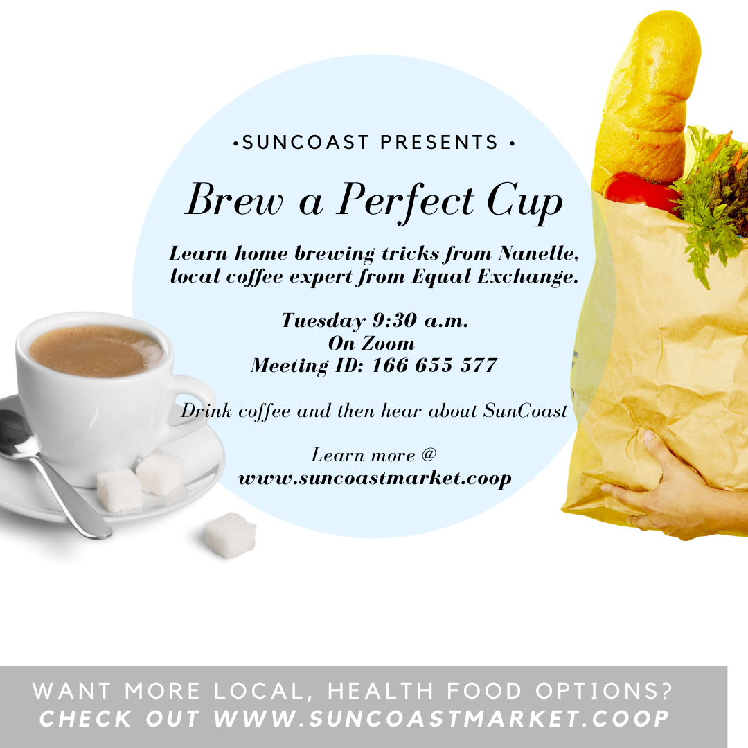 Every month we host a coffee talk to share information about our progress and to connect with people in our community. This month we will be joined by Nanelle Newbom, coffee expert from Equal Exchange. Considering joining SunCoast Market? We have 20 free home coffee kits so that you can participate in the experience. Kits […]