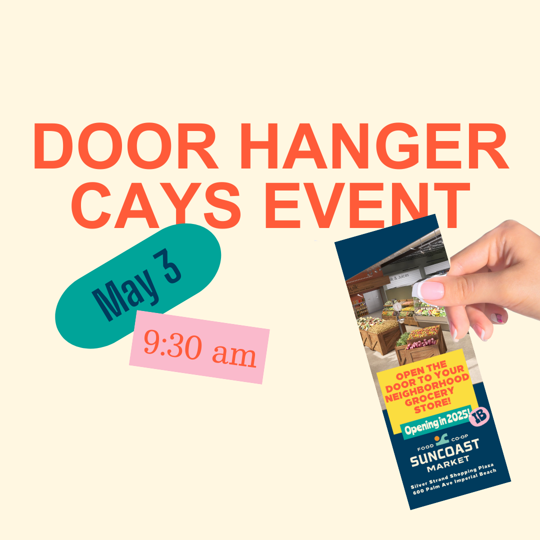 Help us canvas the Cays neighborhood and hang door advertisements! Email info@suncoastmarket.coop if you can join us for a fun (and very helpful) event! Meet us at 9:30 at the Cay's fire station to get going!