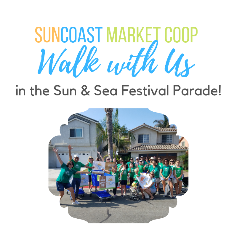 Join us in the Sun & Sea Festival Parade! We need people to represent SunCoast and help us spread the word. We are in the "Clean Waves" category this year (of course!) and will be looking for ways to share the environmentally responsible messages.