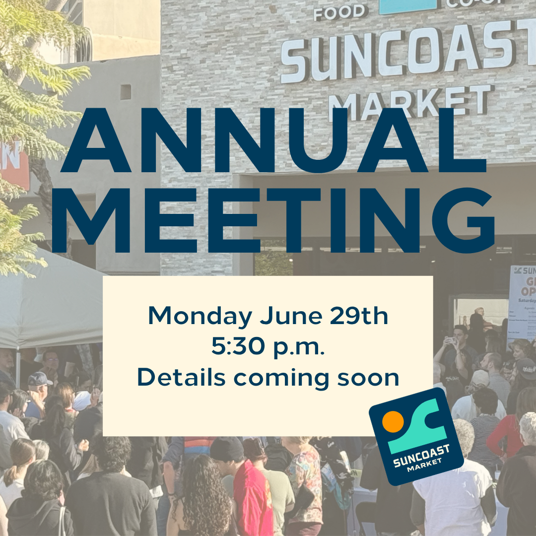 SunCoast Store 600 Palm Ave, Imperial Beach, CA, United StatesRead moreMark your calendar! Join us for Suncoast Market Co-op’s Annual Meeting on June 29 at 5:30 PM. This is your co-op, and we’d love to have you there. More details […]