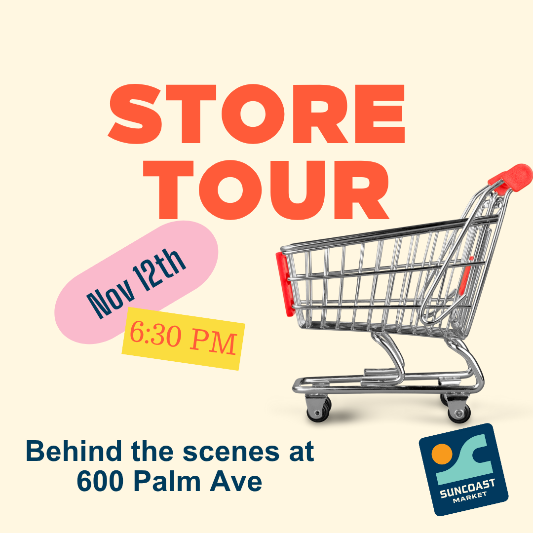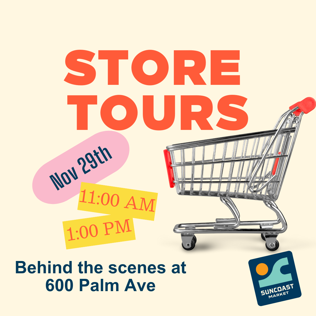 SunCoast Market tour! So many of you have joined the SunCoast family recently. Let's keep the momentum going and get even more of our friends and neighbors signed up. We are celebrating having over 1400 owners, as well as the upcoming opening of SunCoast, by offering a sneak peak tour of our new store.