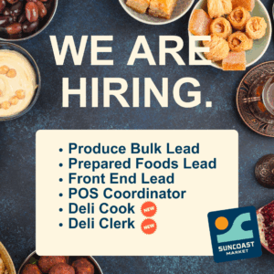 TO APPLY: Please view all positions, descriptions, and requirements and apply at www.indeed.com/cmp/Suncoast-Market-Co–op Applications will be reviewed on a rolling basis.